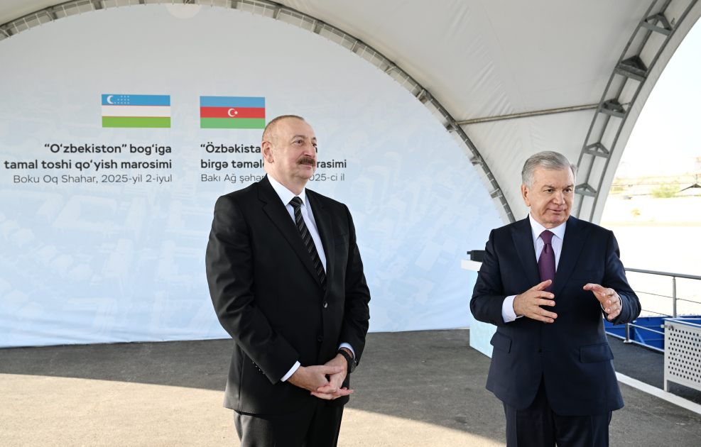Sonra Azərbaycan Prezidenti İlham Əliyev və Özbəkistan Prezidenti Şavkat Mirziyoyev “Bakı Ağ Şəhər”də olublar.