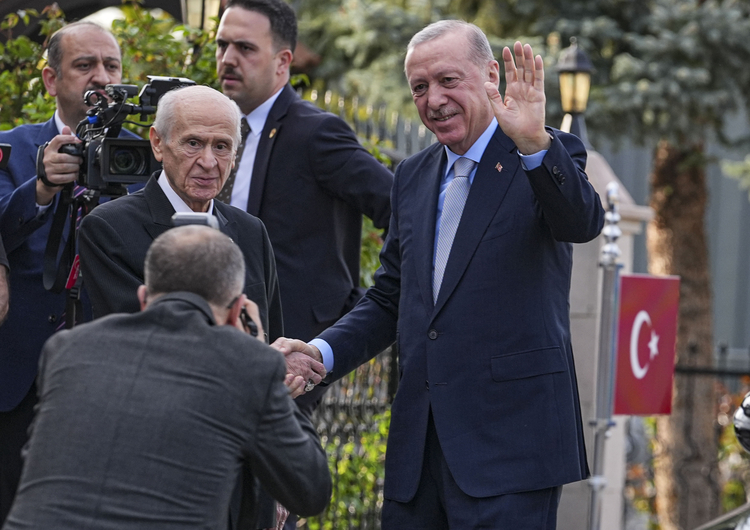 Cumhurbaşkanı Erdoğan ve Bahçeli, tokalaşarak gazetecilere poz verdikten sonra görüşmeye geçti. Görüşme basına kapalı yürütüldü.