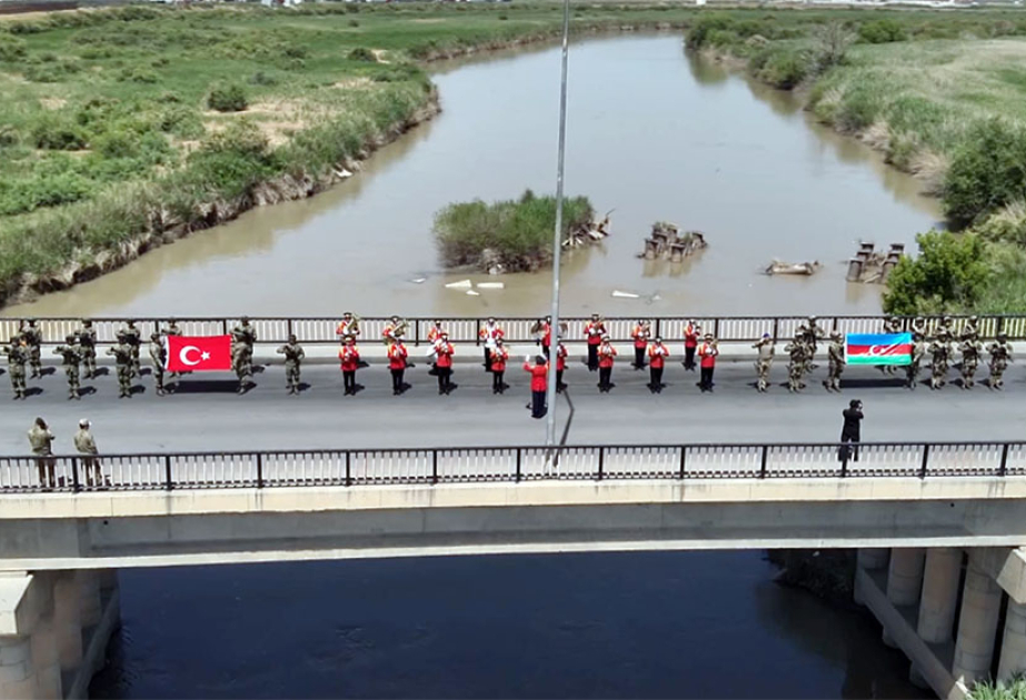 “Ümid” körpüsündə Azərbaycan Respublikasının Dövlət Himni və Türkiyə Respublikasının İstiqlal Marşı ifa edildikdən sonra bayraqların dəyişmə mərasimi olub.